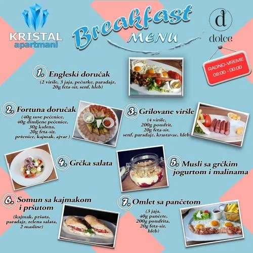 Bezbednost hrane i pića | Svi tanjiri, pribor za jelo, čaše i drugi pribor se dezinfikuju, Posude za doručak koje možete da ponesete sa sobom, Dostavljena hrana je adekvatno pokrivena |