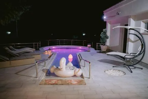 | Bazen i velnes | zatvoreni bazen (tokom čitave godine), grejani bazen, stolice za sunčanje ili ležaljke za plažu, igračke za bazen, suncobrani, ograda oko bazena, otvoreni bazen (sezonski), dečji bazen, bazen, otvoreni bazen, zatvoreni bazen, bazen |
