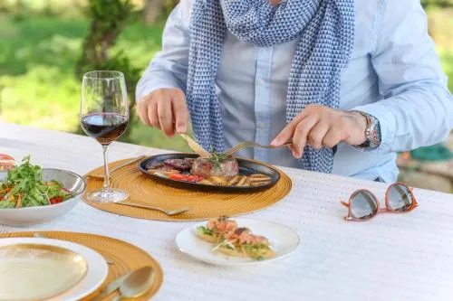 | Hrana i piće | meni za poseban režim ishrane (na zahtev), dostava namirnica, obroci za decu, sadržaji za pravljenje roštilja, snek bar, vino/šampanjac, restoran, posluga u sobi (rum servis), bar, doručak u sobi, kafić u okviru objekta, voće |