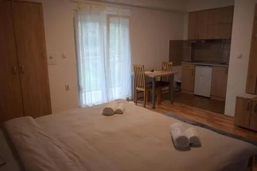 | Smeštaj dece i dodatni kreveti | Boravak je dozvoljen deci bilo kog uzrasta. Deca (uzrasta do i uključujući 2 god.) mogu da borave besplatno kada koriste dostupan krevetac. Deca (uzrasta do i uključujući 2 god.) mogu da borave besplatno kada koriste postojeći krevet. Deca (uzrasta od uzrasta od 3 god. do do 12 god. god.) mogu da borave za € 5 po osobi, po noćenju kada koriste postojeći krevet. Gosti (bez obzira na uzrast) mogu da borave za € 10 po osobi, po noćenju kada koriste dostupan dodatni krevet. Bilo kakva vrsta dodatnog ili dečijeg kreveta dobija se na zahtev i mora je potvrditi smeštajni objekat. Dodatni troškovi neće biti automatski uračunati u ukupnu cenu, već se moraju platiti odvojeno u smeštajnom objektu tokom vašeg boravka. |