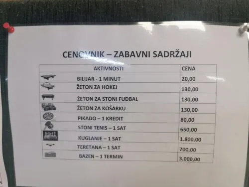 | Razno | sobe sa anti-alergenskom posteljinom, grejanje, zabranjeno pušenje u celom objektu |