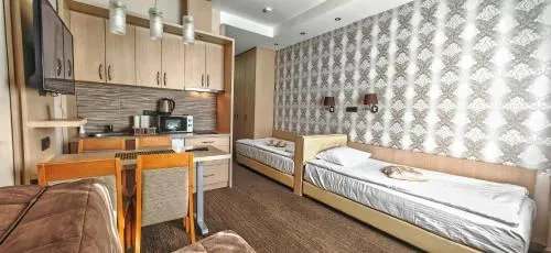 | Razno | sobe sa anti-alergenskom posteljinom, grejanje, zvučno izolovane sobe, sobe za nepušače, lift, zabranjeno pušenje u celom objektu, porodične sobe, pristup ključ karticom |