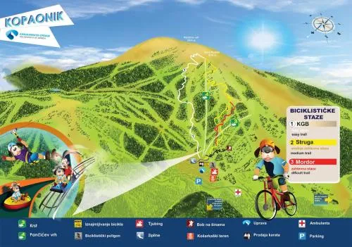 Aktivnosti | obilasci biciklom, pešačke ture, skijanje, iznajmljivanje ski-opreme u okviru objekta, stoni tenis, skijašnica, škola skijanja |