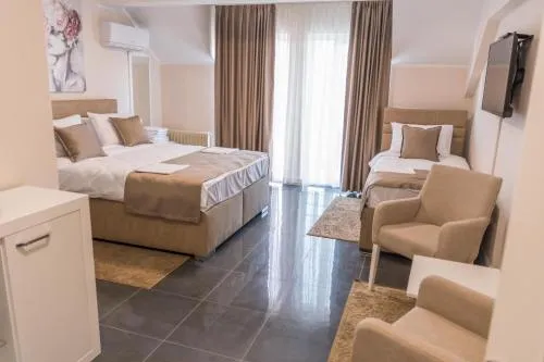 | Smeštaj dece i dodatni kreveti | Boravak je dozvoljen deci bilo kog uzrasta. Deca (uzrasta do i uključujući 2 god.) mogu da borave besplatno kada koriste dostupan krevetac. Niste uneli dodatne krevete. Bilo kakva vrsta dodatnog ili dečijeg kreveta dobija se na zahtev i mora je potvrditi smeštajni objekat. |