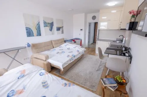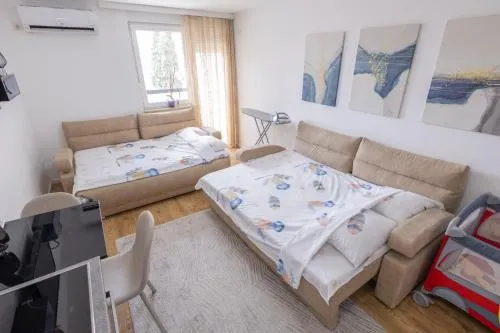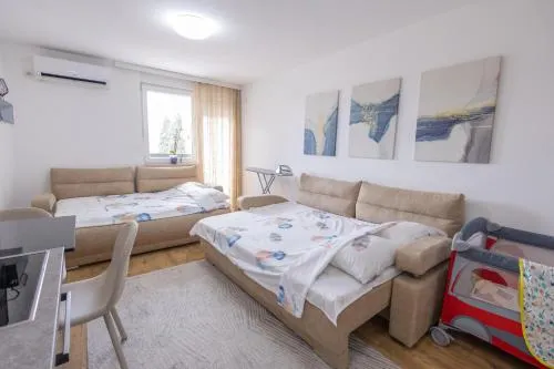 | Smeštaj dece i dodatni kreveti | Boravak je dozvoljen deci bilo kog uzrasta. Deca (uzrasta do i uključujući 5 god.) mogu da borave besplatno kada koriste dostupan krevetac. Deca (uzrasta do i uključujući 11 god.) mogu da borave besplatno kada koriste postojeći krevet. Deca (uzrasta od uzrasta od 12 god. do do 17 god. god.) mogu da borave za € 2 po osobi, po noćenju kada koriste postojeći krevet. Niste uneli dodatne krevete. Bilo kakva vrsta dodatnog ili dečijeg kreveta dobija se na zahtev i mora je potvrditi smeštajni objekat. Dodatni troškovi neće biti automatski uračunati u ukupnu cenu, već se moraju platiti odvojeno u smeštajnom objektu tokom vašeg boravka. |