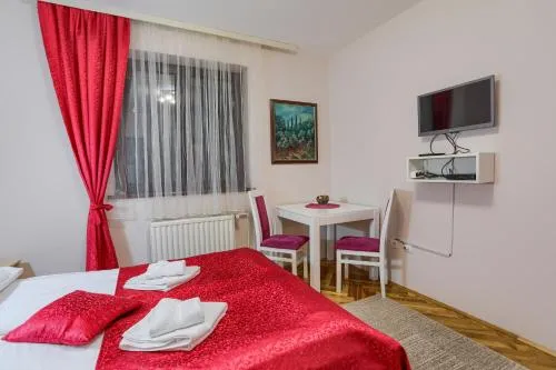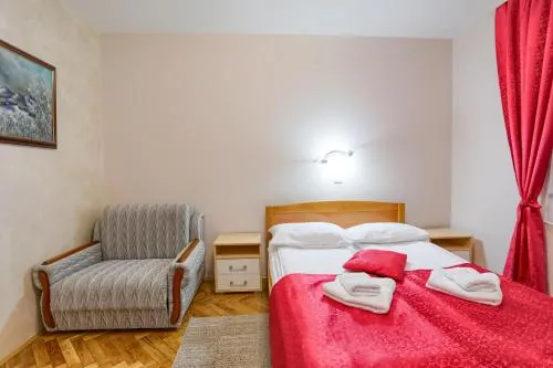 Smeštaj dece i dodatni kreveti | Boravak je dozvoljen deci bilo kog uzrasta. Deca (uzrasta do i uključujući 1 god.) mogu da borave besplatno kada koriste dostupan krevetac. Deca (uzrasta do i uključujući 2 god.) mogu da borave besplatno kada koriste postojeći krevet. Deca (uzrasta od uzrasta od 3 god. do do 7 god. god.) mogu da borave za € 5 po osobi, po noćenju kada koriste postojeći krevet. Deca (uzrasta od uzrasta od 8 god. do do 17 god. god.) mogu da borave za € 10 po osobi, po noćenju kada koriste postojeći krevet. Niste uneli dodatne krevete. Bilo kakva vrsta dodatnog ili dečijeg kreveta dobija se na zahtev i mora je potvrditi smeštajni objekat. Dodatni troškovi neće biti automatski uračunati u ukupnu cenu, već se moraju platiti odvojeno u smeštajnom objektu tokom vašeg boravka. |